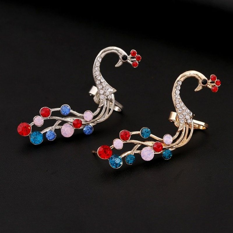 1 Ks Etnické Pávie Strieborné Náušnice S Farebnými Kamienkami Manžetové Pre Ženy