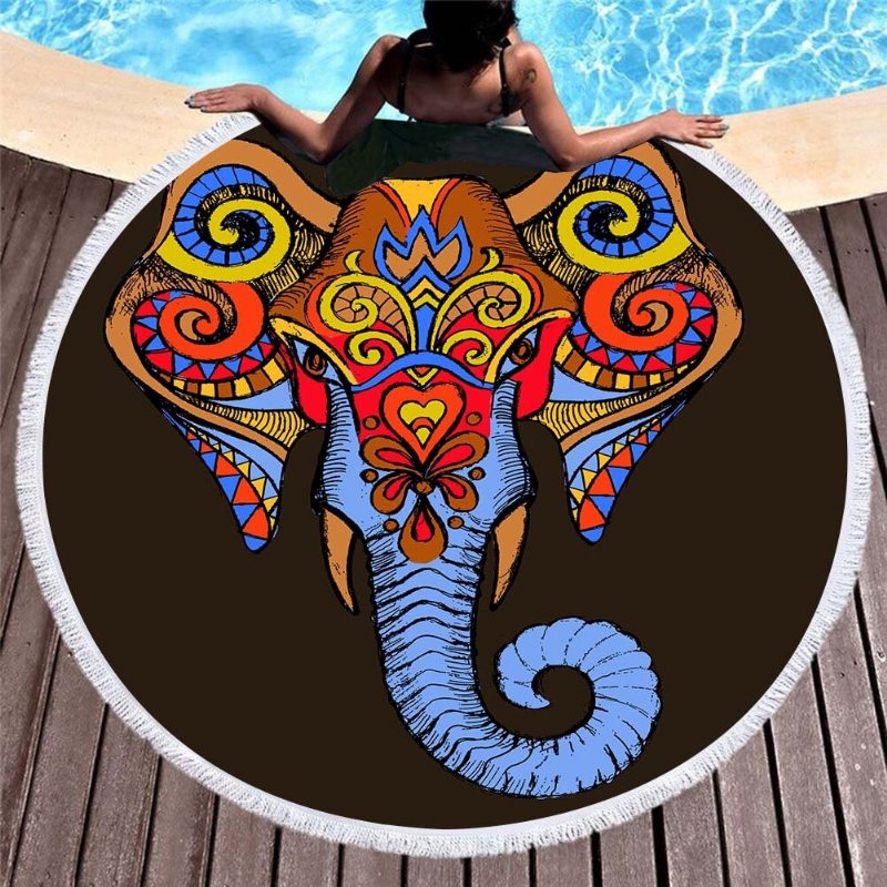 3d Totem Bohémska Mandala S Potlačou Slonov Plážové Osušky Z Mikrovlákna Okrúhly Tvar Pikniková Deka
