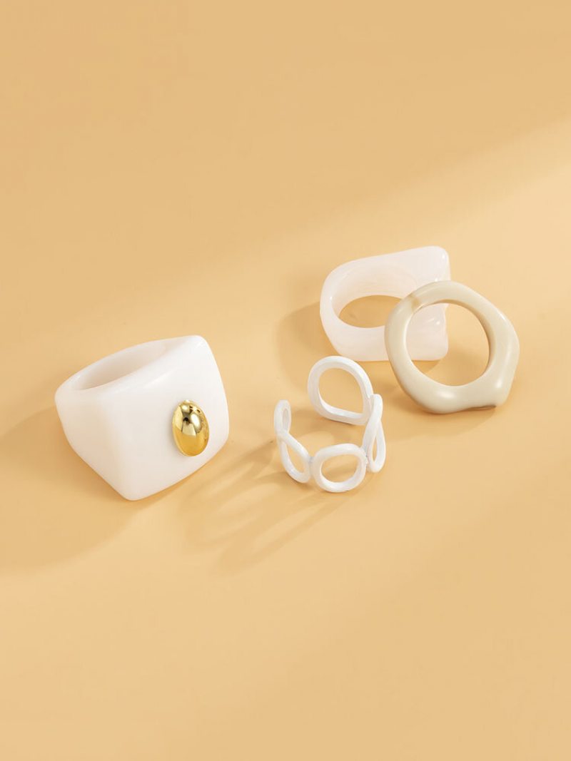 4 Ks/sada Trendy Osobnostné Duté Prstene Z Akrylovej Zliatiny Nepravidelného Geometrického Tvaru