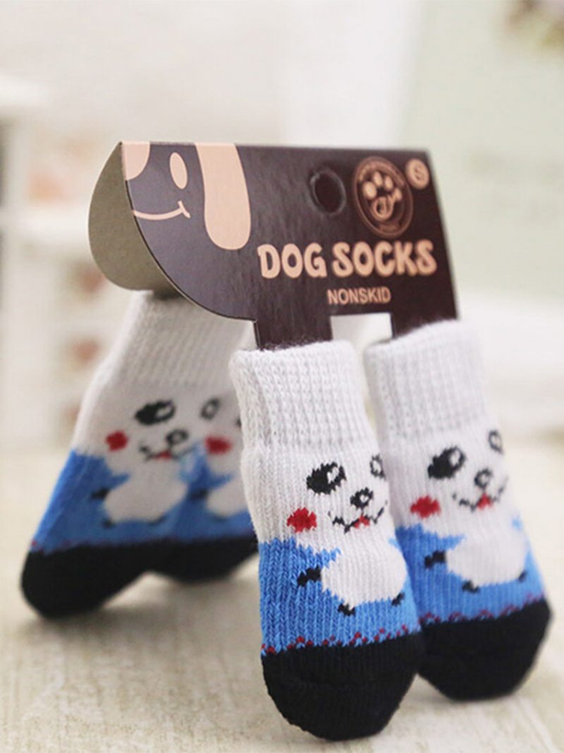 4ks Zimné Teplé Kreslené Topánky Pre Šteňa Ponožky Vzor Náhodný