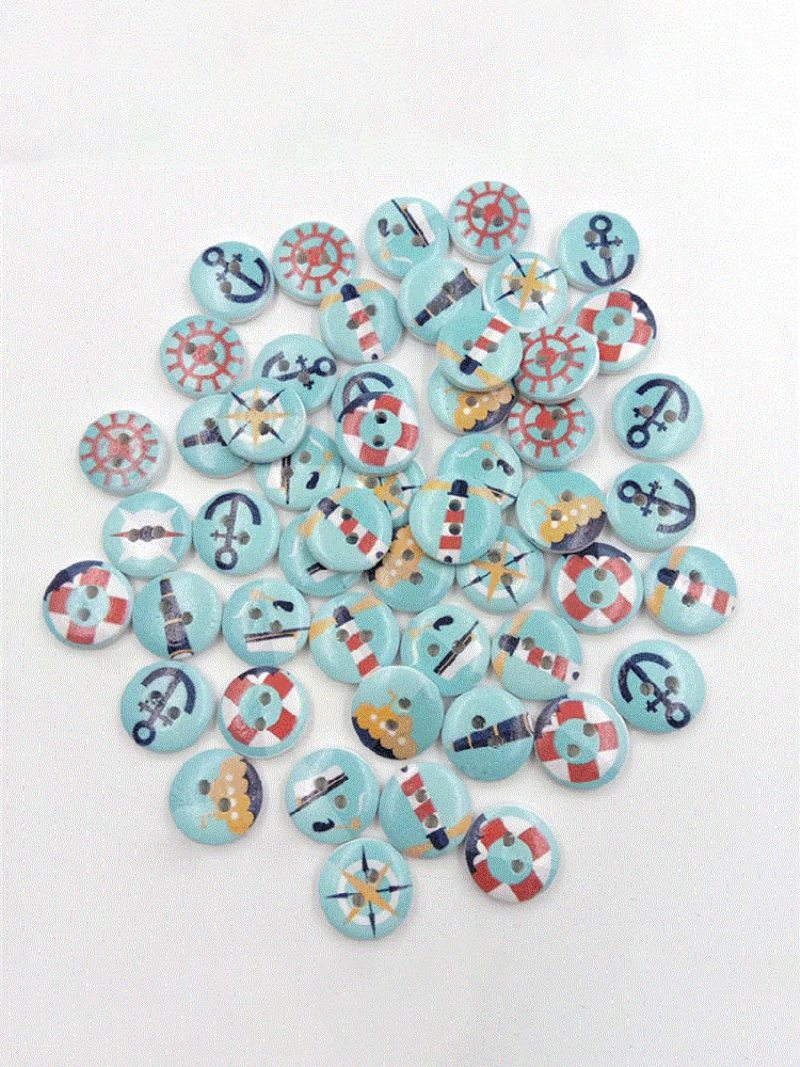 50 Ks 15 mm Námornícka Modrá Tlač Drevené Gombíky Materiály Pre Domácich Majstrov