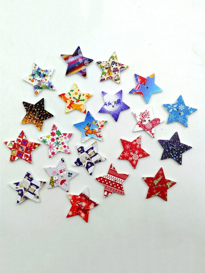 50 Ks Drevené Ozdobné Gombíky V Tvare Piatich Hviezdičiek Na Šitie S Dvomi Dierkami