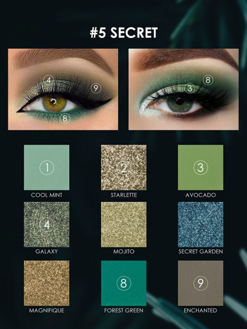 9 Farieb Avocado Eyeshadow Palette Matte Glitter Waterproof Eye Makeup