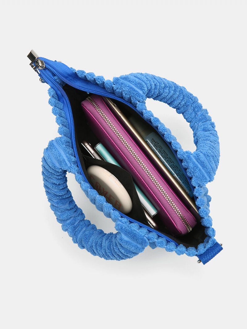 Dámska Plyšová Ležérna Jednofarebná Kabelka S Kvetinovým Ornamentom