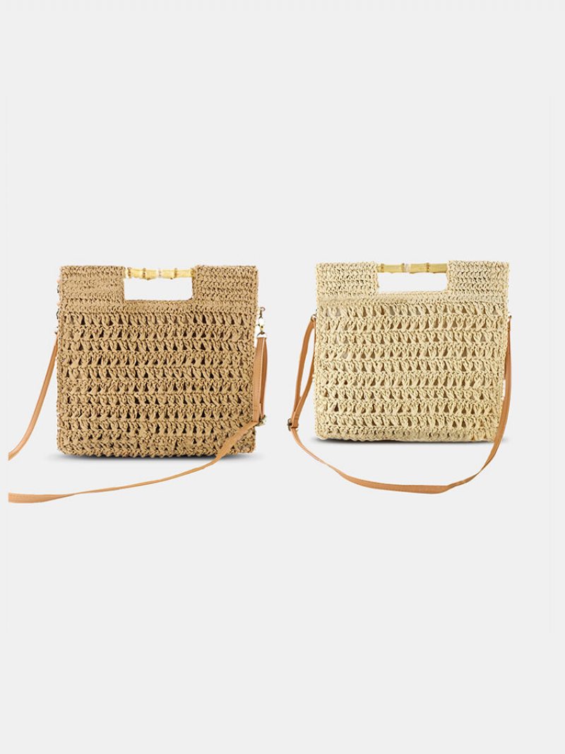 Dámska Slamená Elegantná Sviatočná Crossbody Kabelka S Premenlivým Popruhom Ležérna Plážová Sladká