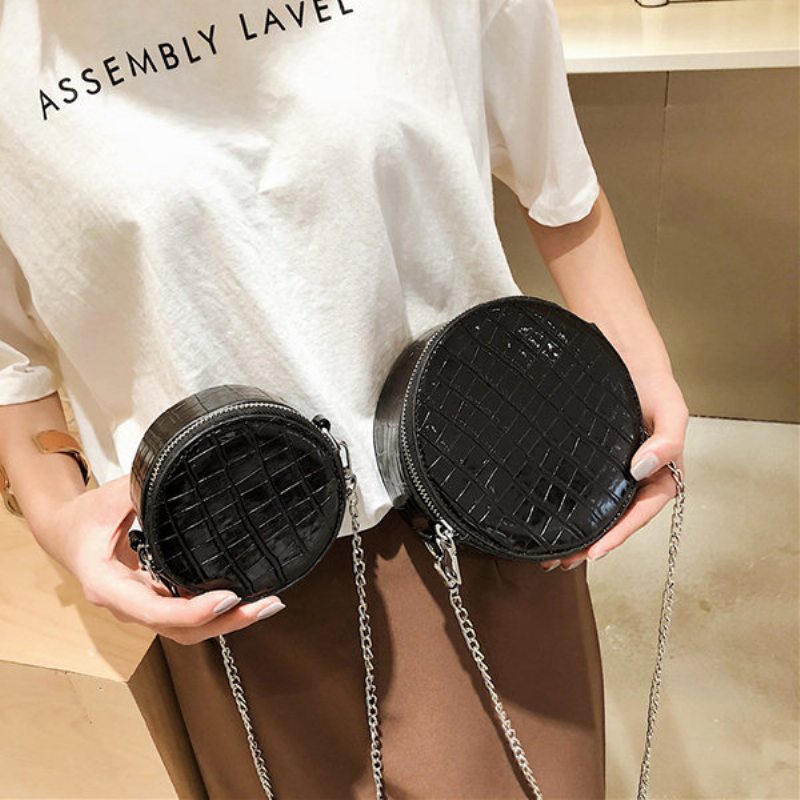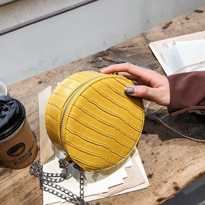 Dámska Taška Z Umelej Kože Aligátor Okrúhla Chain Bag Crossbody