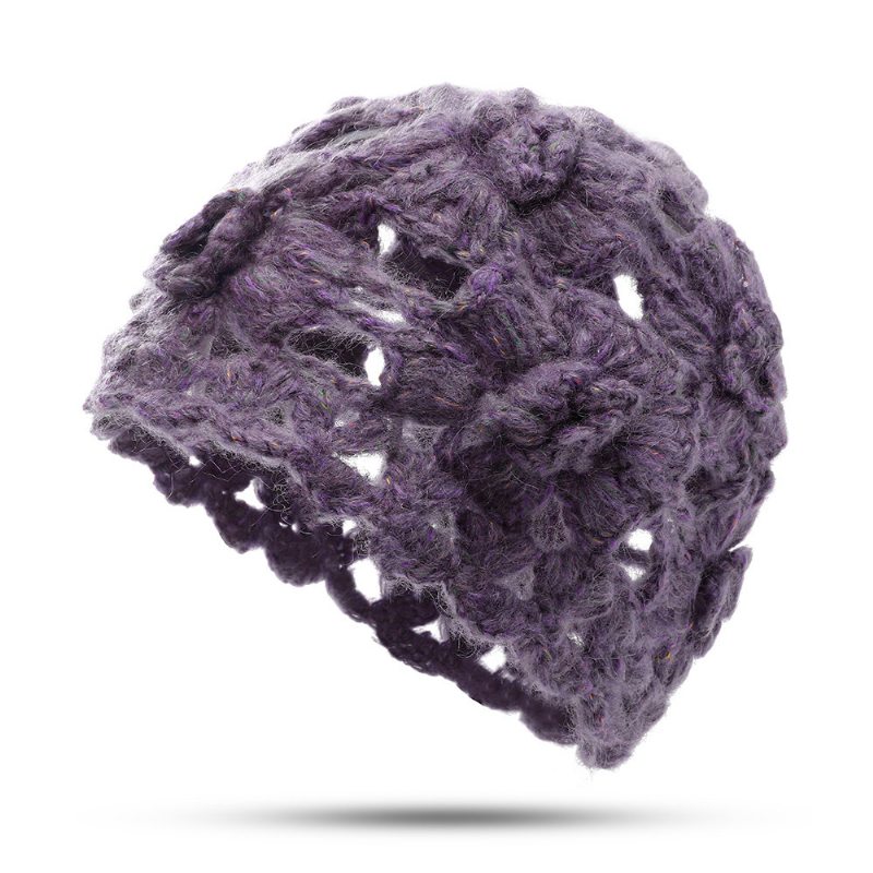Dámska Vlnená Čiapka S Čiapkou Pletená Čipka Ručne Háčkovaná Ozdobná