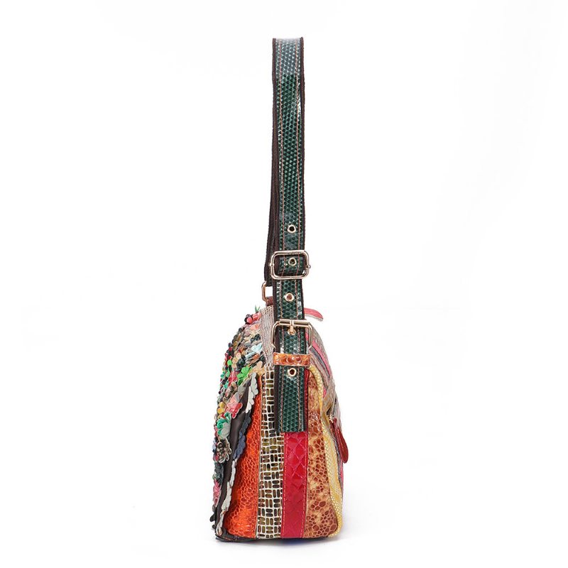 Dámske Crossbody Kabelky Z Bohémskej Pravej Kože Kvetinové Vintage Cez Rameno