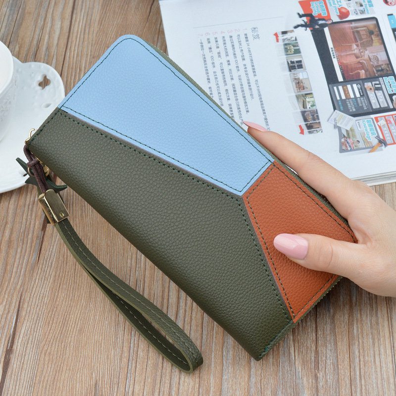Dámske Farebné Prešívanie Multi-slot Dlhé Peňaženky Držiak Kariet 5.5-palcový Taška Na Telefón