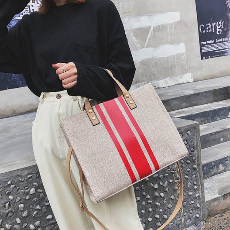Dámske Plátno Farebné Prešívanie Tote Bag Kabelka Crossbody