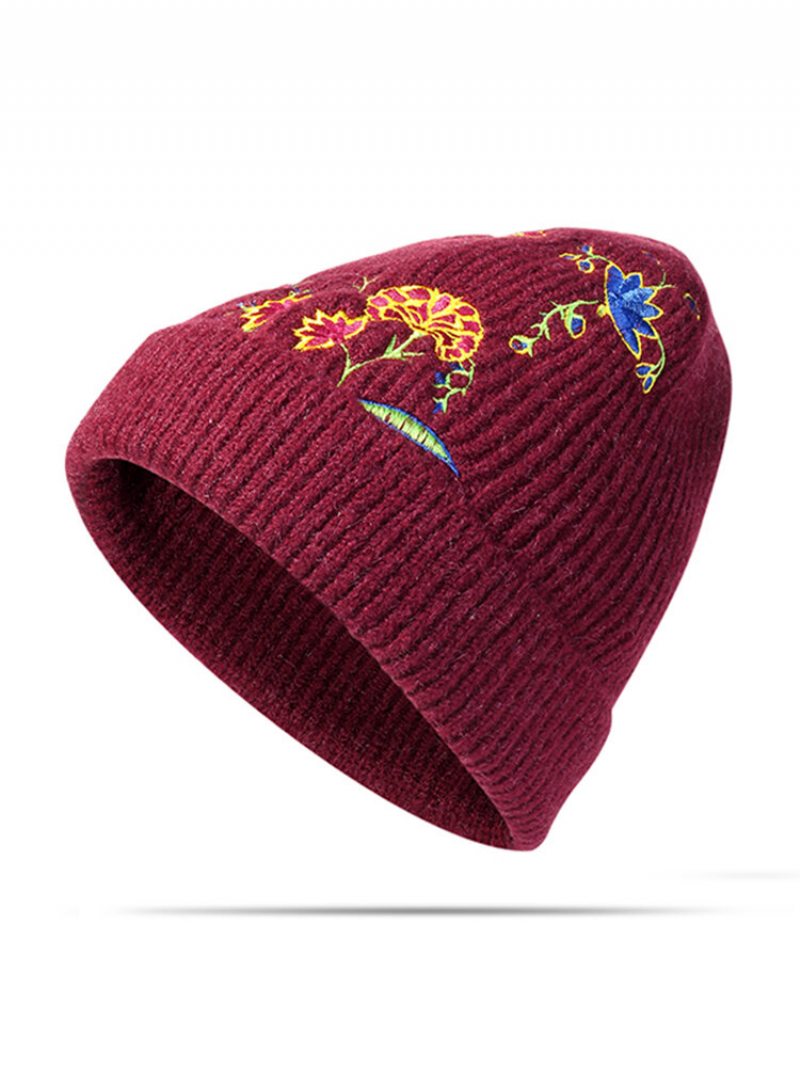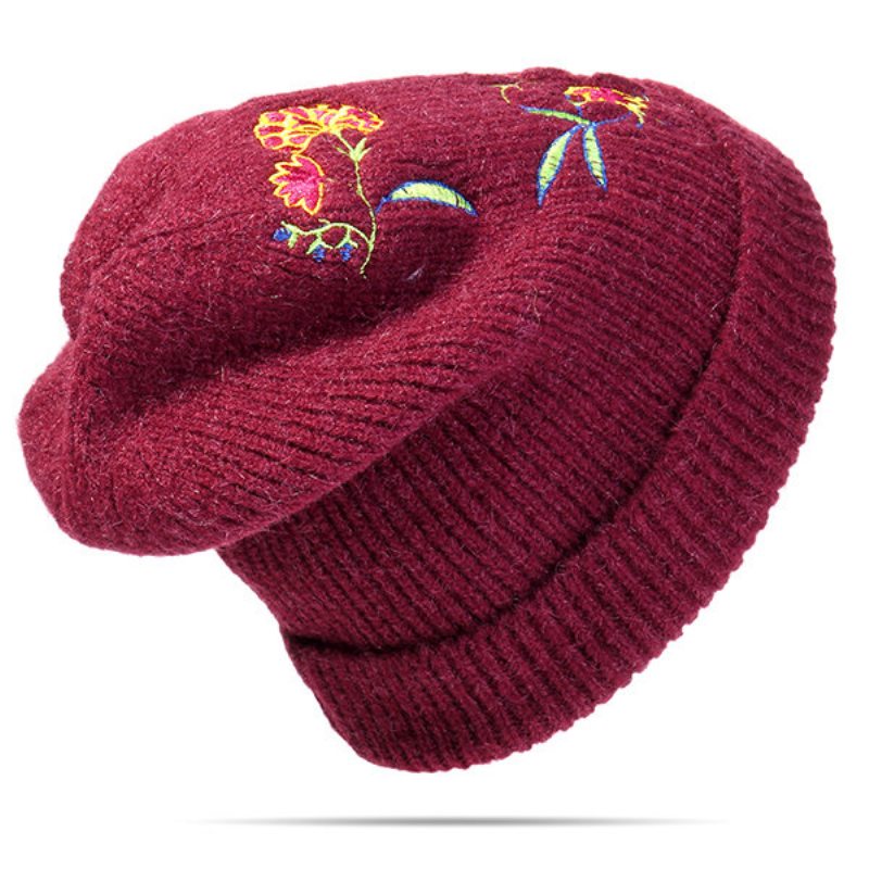 Dámske Vlnené Vyšívanie Teplé Pletené Čiapky Zimné Ležérne Elastické S Čiapkou