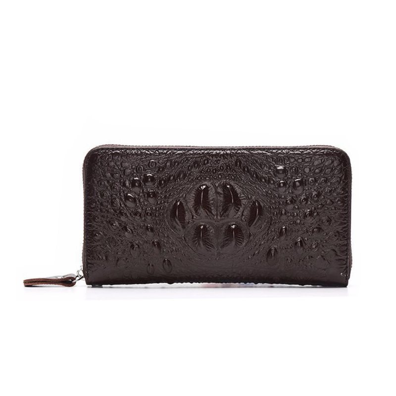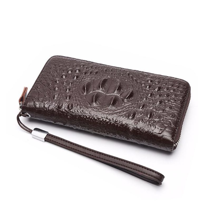 Dlhá Pánska Peňaženka S Krokodílím Vzorom A Kovovým Zipsom Z Pravej Kože Clutch Business Bag