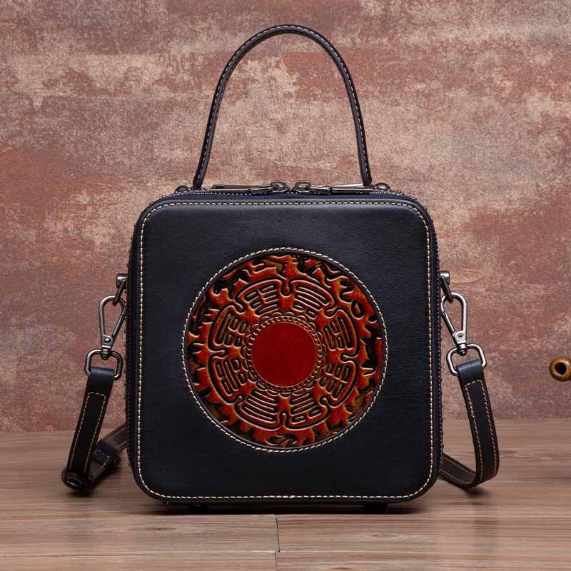 Embossed Dámska Taška 2023 Nová Prvá Vrstva Kabelka Z Hovädzej Kože Messenger Retro Malá Štvorcová Na Jedno Rameno