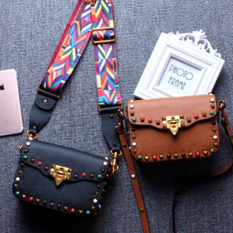 Farba Zahustená Bavlnená Taška Cez Rameno So Širokou Stuhou Kožená Diagonálna Pre Ženy 2023
