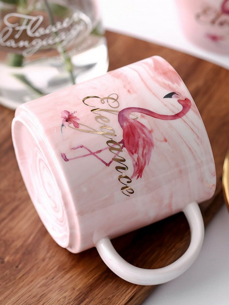 Keramický Hrnček Na Kávu So Vzorom Vtáctva Romantických Plameniakov