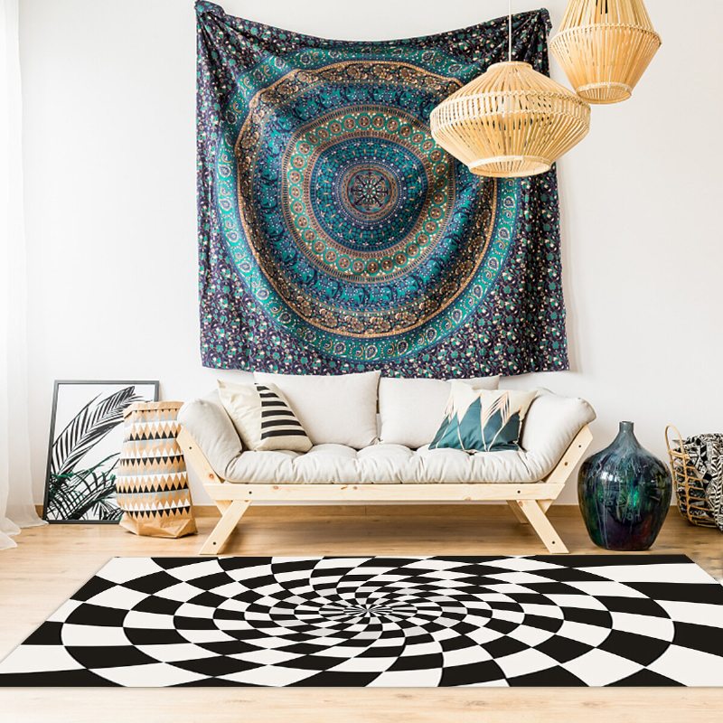 Kockované Optické Ilúzie Protišmykový Koberec Durbale Protišmyková Podlahová Rohož Netkaná Čierna Biela Rohožka Do Obývačky Jedáleň Spálňa Kuchyňa