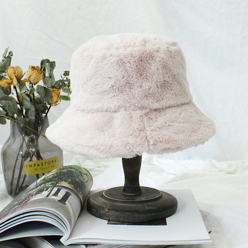 Kožušina Hrubý Teplý Zimný Bucket Čiapka Ženy Jednofarebné Dievčatá Plochý Top Velvet Fedoras Dámsky Plyšový Bob
