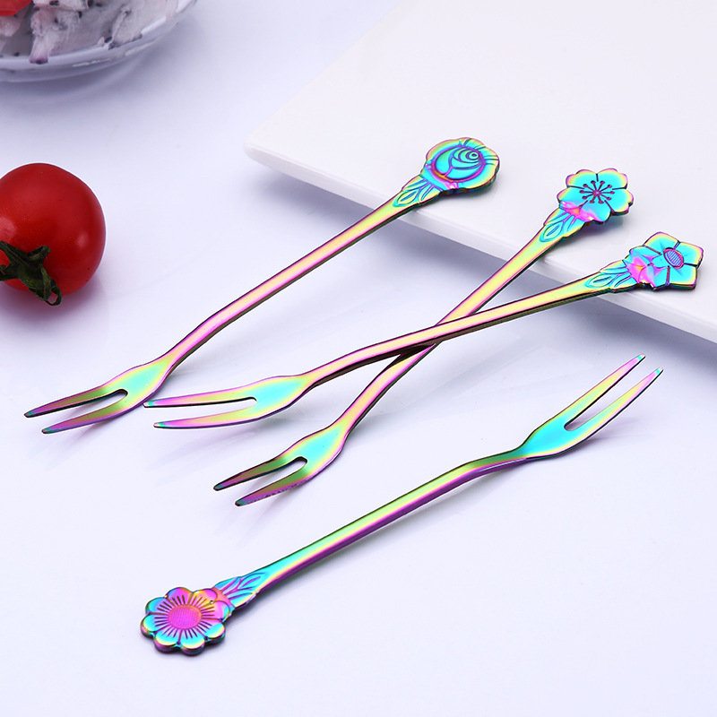 Kreatívne Farebné Kvetinky Z Nehrdzavejúcej Ocele Vidlička Ovocné Kuchynské Náradie