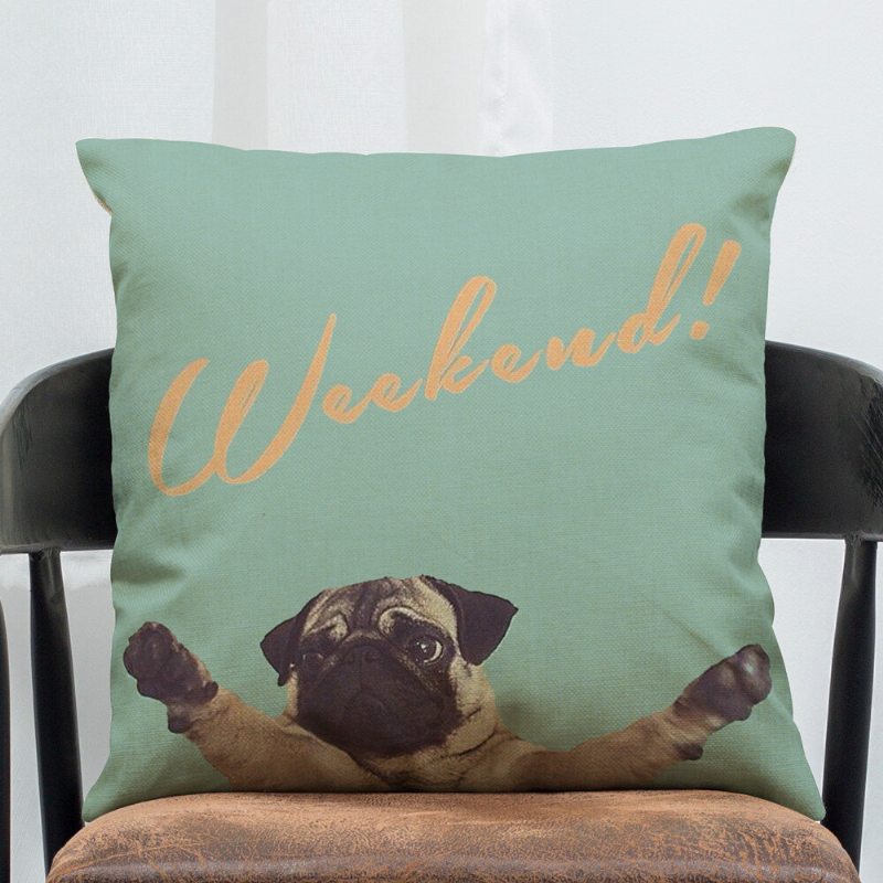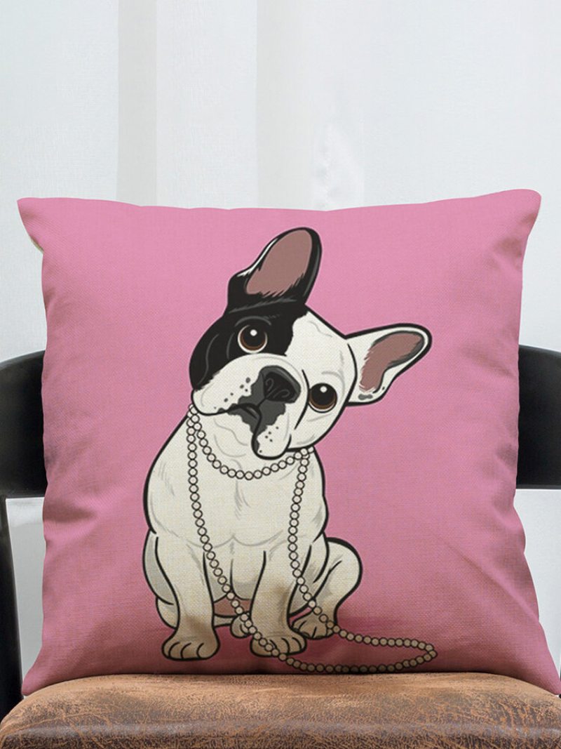 Kreslený Francúzsky Buldoček Bavlnená Obliečka Na Vankúš Štvorcový Dekorácia Na Pohovku Do Obývačky Poťah Na