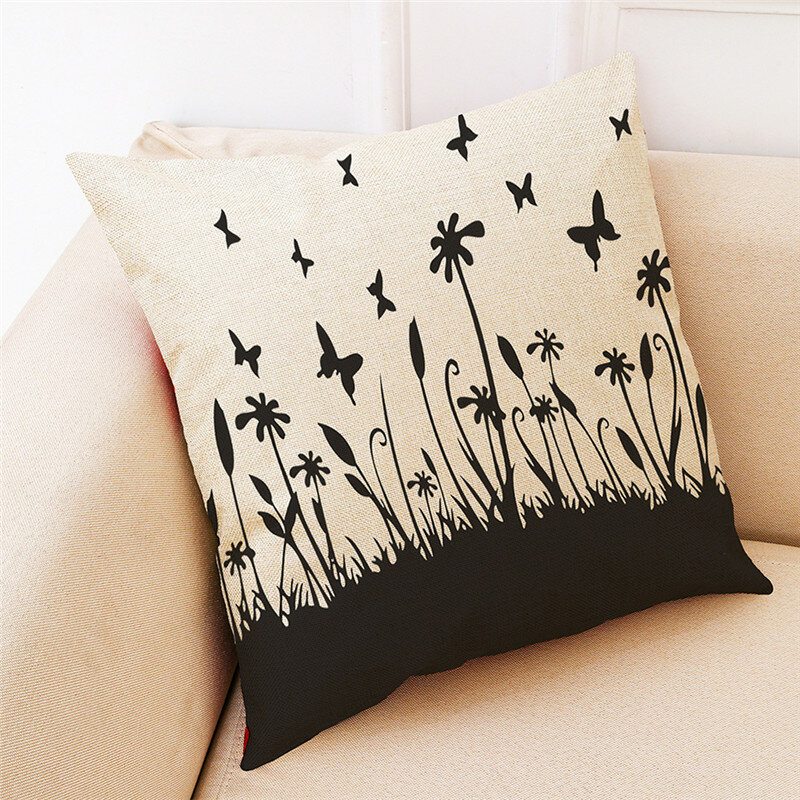 Kvetinový Vzor V Stručnom Štýle Hranatý Bavlnená Bielizeň Obliečka Na Vankúš Dekorácia Do Auta A Domu