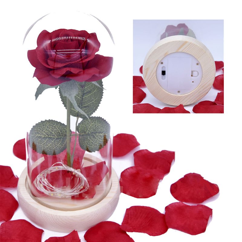 Lampa S Červenou Ružou S Led Rozprávkovým Reťazcom Svietiacim Spadnuté Lístky A Abs Základňou V Sklenenej Kupole Najlepší Darček Na Valentína Pre Ňu