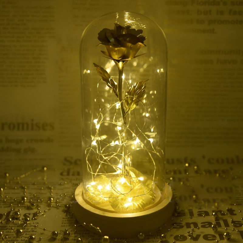 Špeciálne Navrhnutá Na Vyjadrenie Lásky K Milencovi, Vyrobená Z Prvotriedneho Ľahkého Hodvábu A Sklenenej Kupole, Zlatá Ružová Lampa Má Svetlá A Napájanie Z Batérie, Ktoré Budú Krásnou Dekoráciou A Najlepšími Darčekmi Na Valentína
