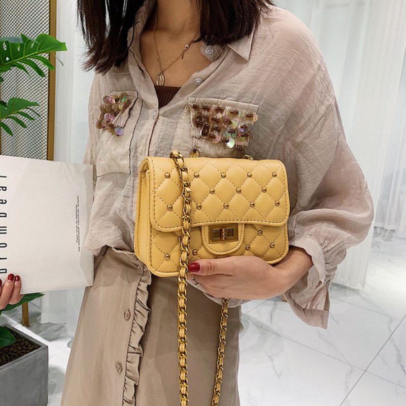 Lingge Chain Small Square Bag New Rivet College Wind Ramenná Taška Net Red Live High-end Diagonal Package