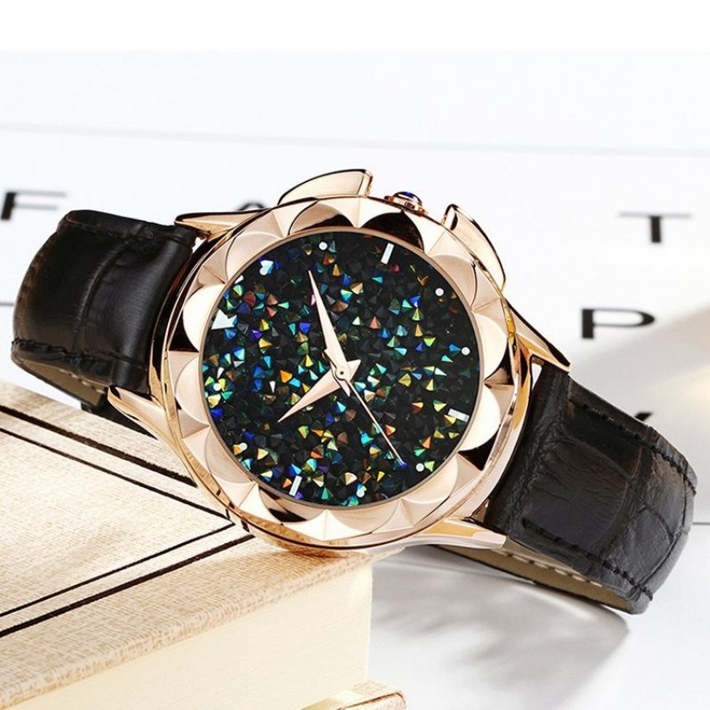Luxusné Dámske Hodinky Flower Case Kaleidoscope Shining Dial Quartz Z Pravej Kože