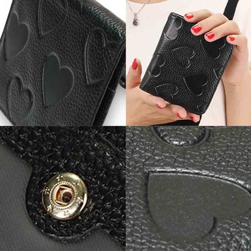 Mäkká Kabelka Z Pravej Kože S Broskyňovou Sponou S Vyrazeným Srdcom Krátka Dámska Spojka S Držiakom Na Kartu