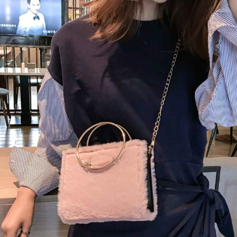 Módna Dámska Crossbody Kabelka Vybraná Plyšová S Jednoramenným Povrazom A Dizajnom Rúčky