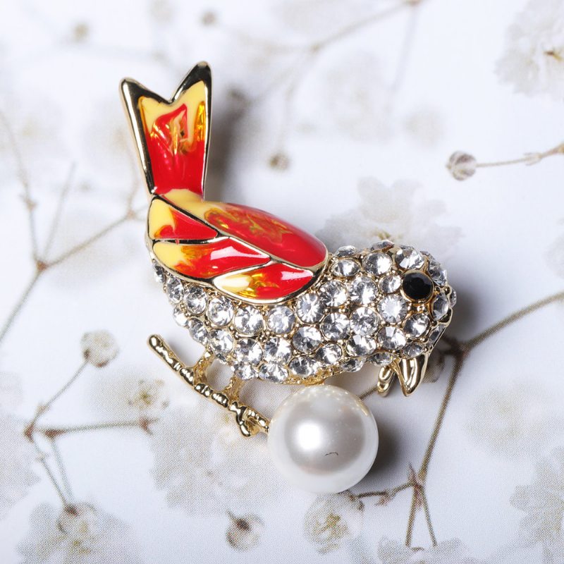 Módne 18k Zlaté Farebné Vtáčie Brošne Kamienky Pearl Luxusný Darček Pre Ženy