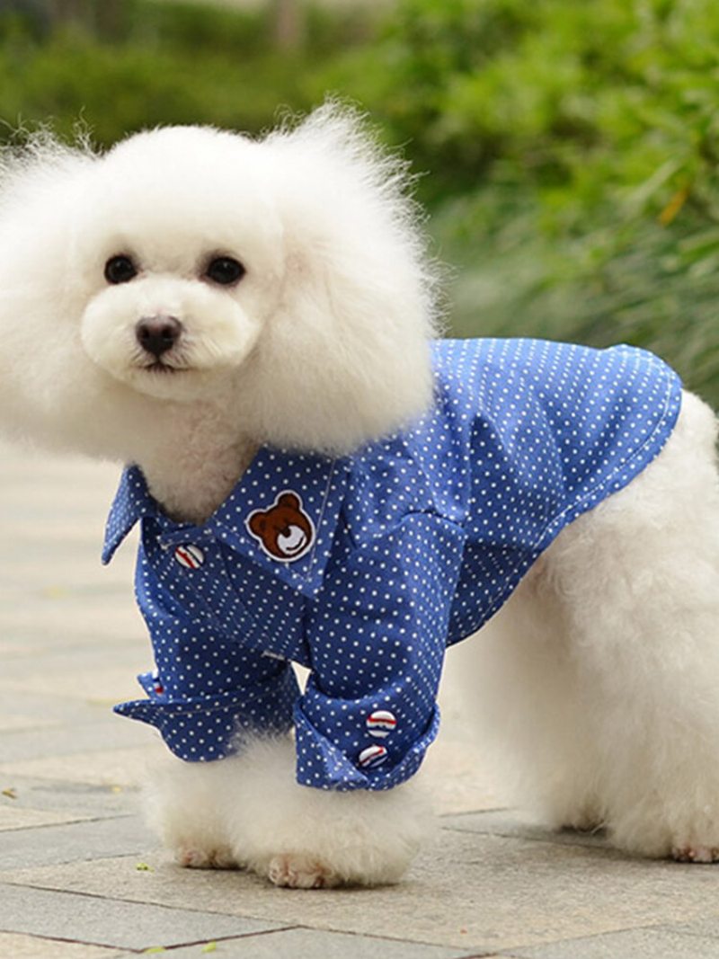 Módne Dog Denim Bodkované Košele Vesty Ležérne Bavlna Oblečenie Pre Psov Cool Lapel Tričko Pre Šteňatá Mačky