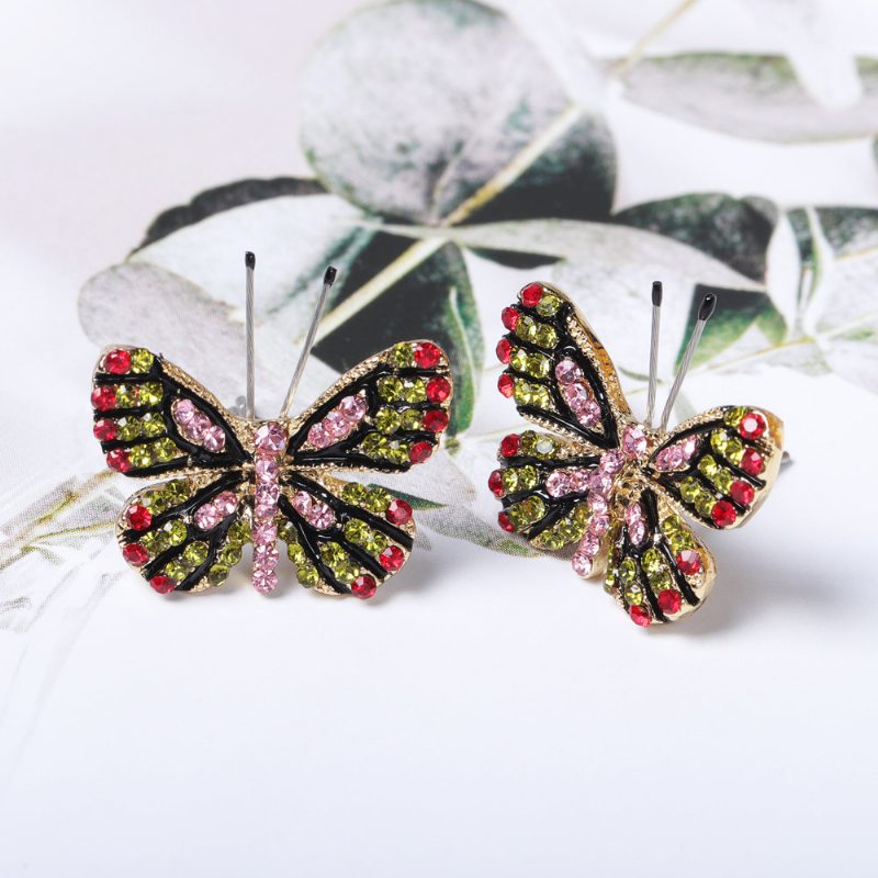Módne Náušnice Z 18k Zlata Motýlie S Farebnými Kamienkami Roztomilé Ako Darček Pre Ženy