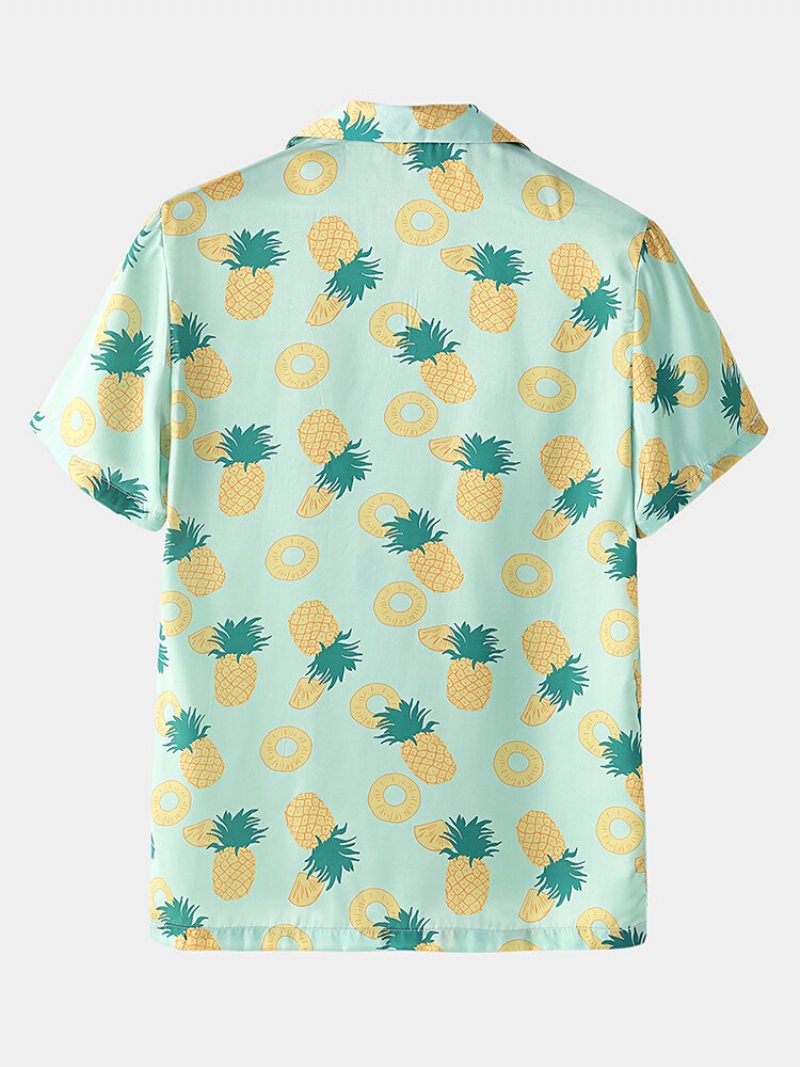Muži Pyžamá S Potlačou Ananásu Faux Sik Dvojdielne Súpravy Hladké A Priedušné Domáce Oblečenie