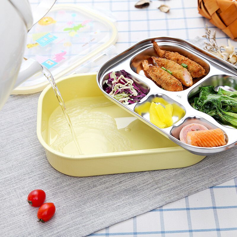 Obedový Box Z Nehrdzavejúcej Ocele Na Školský Obed Bento Nádoby Obdĺžnik Kreslený 5 Priehradiek