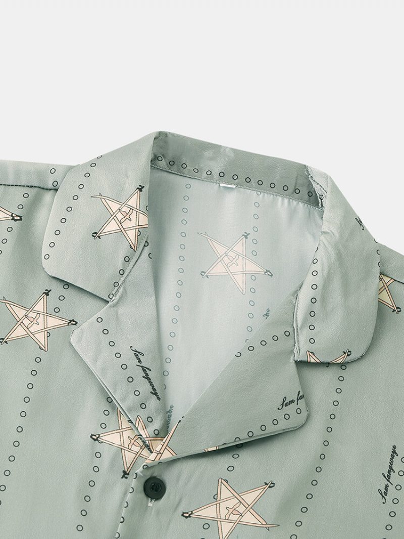 Pánska Svetlozelená Potlač S Hviezdami Luxusné Pyžamá S Krátkym Rukávom Z Umelého Hodvábu Na Spanie Útulné Spoločenské Oblečenie