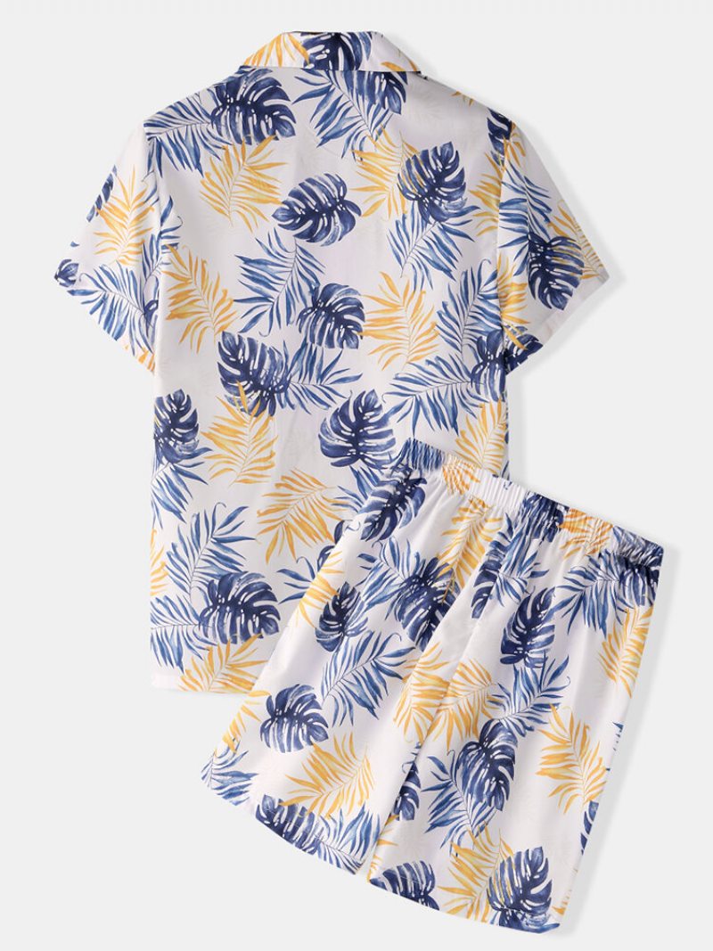 Pánske Pyžamo S Tropickou Potlačou A Kvetinovou Mäkké Spacie Oblečenie Z Umelého Hodvábu S Krátkymi Rukávmi