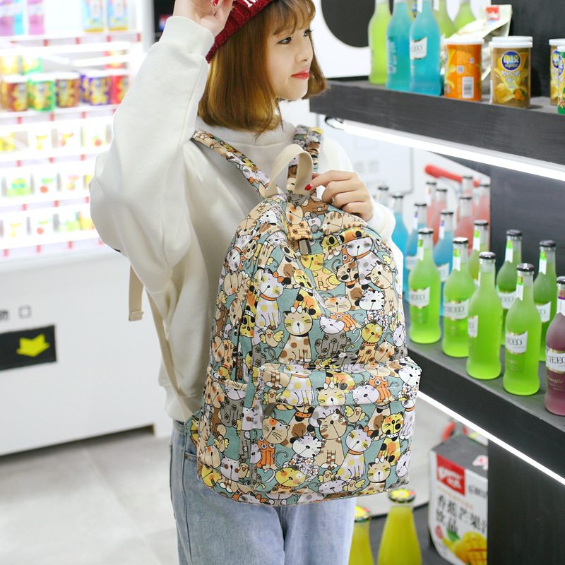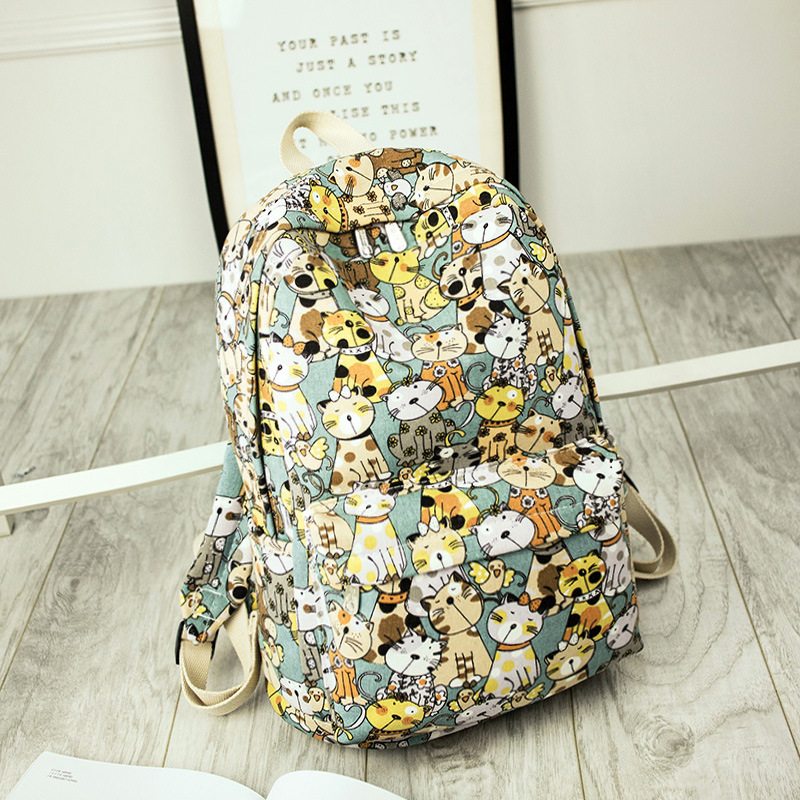 Plátenný Batoh Školská Taška Pre Zš Roztomilá Mačka S Potlačou