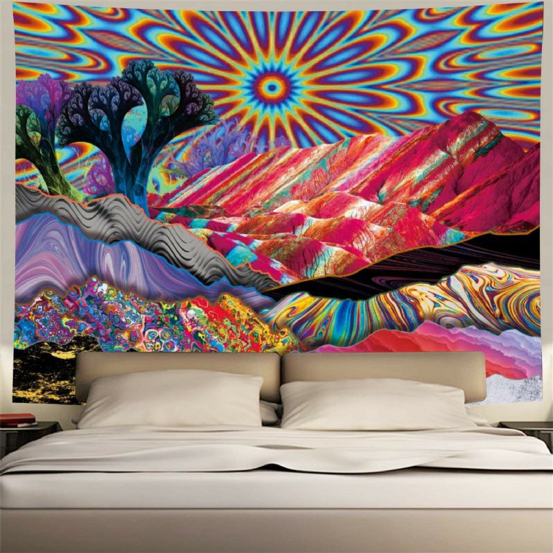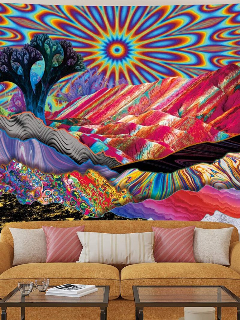 Psychedelic Mountain Sun Gobelín Abstraktné Stromy Farebná Príroda Krajina Čechy