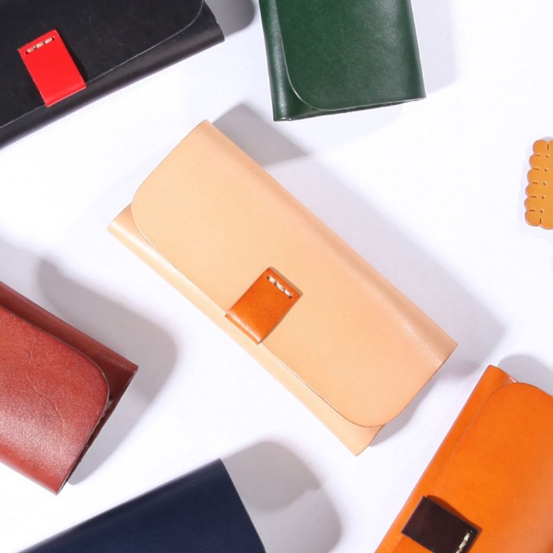 Ručne Vyrábaná Kožená Japonská Taška Na Okuliare So Zeleninou A Opálenou Kožou