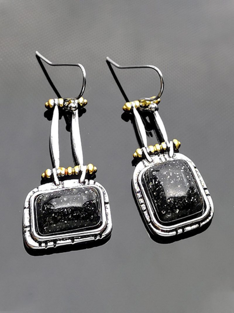 S925 Zliatina Prírodný Kameň Čierna Tyrkysová Geometrické Náušnice Tvar Vrecúška Dlhé Pre Ženy