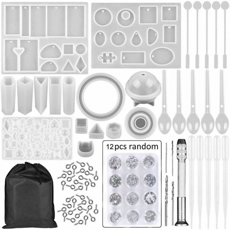 Sada 94 Kusov Silikónových Odlievacích Foriem A Nástrojov S Čiernym Úložným Vakom Na Výrobu Vlastných Šperkov