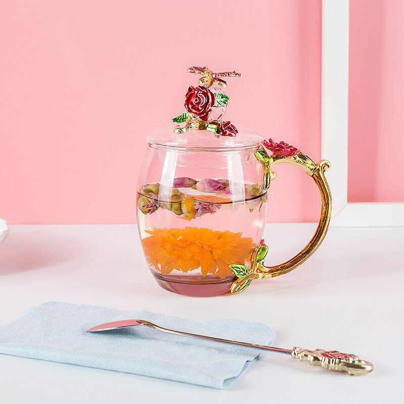Smaltovaná Šálka Darčeková Kvetinová Sklenená Smaltovaný Hrnček Na Čaj Na Kávu S Lyžičkou