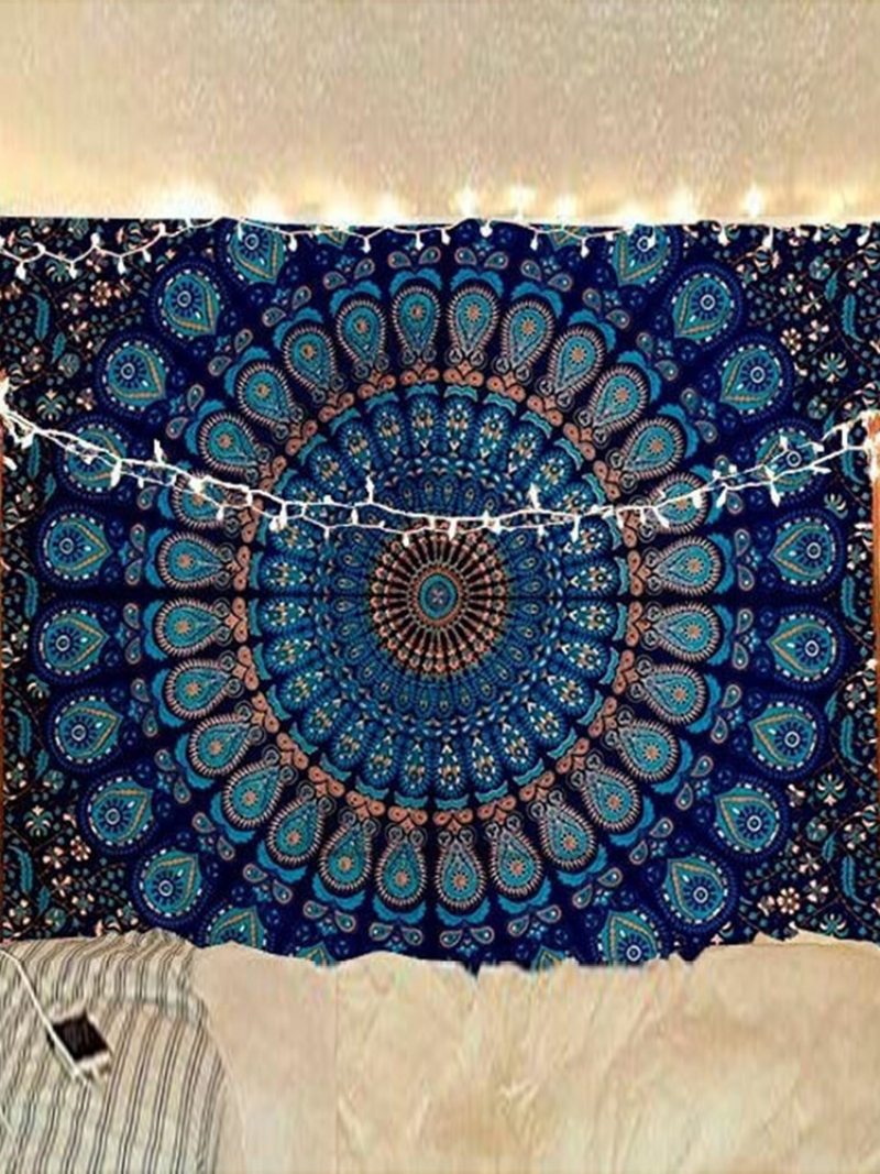 Tlačený Závesný Gobelín Indický Bohémsky Psychedelický Páv Mandala Nástenný Kvetinový