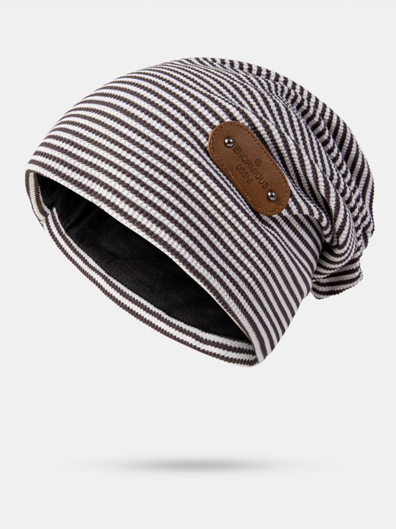 Unisex Bavlnené Prúžkové Nity S Pu Záplatou Vintage Zateplená Čiapka S Čiapkou