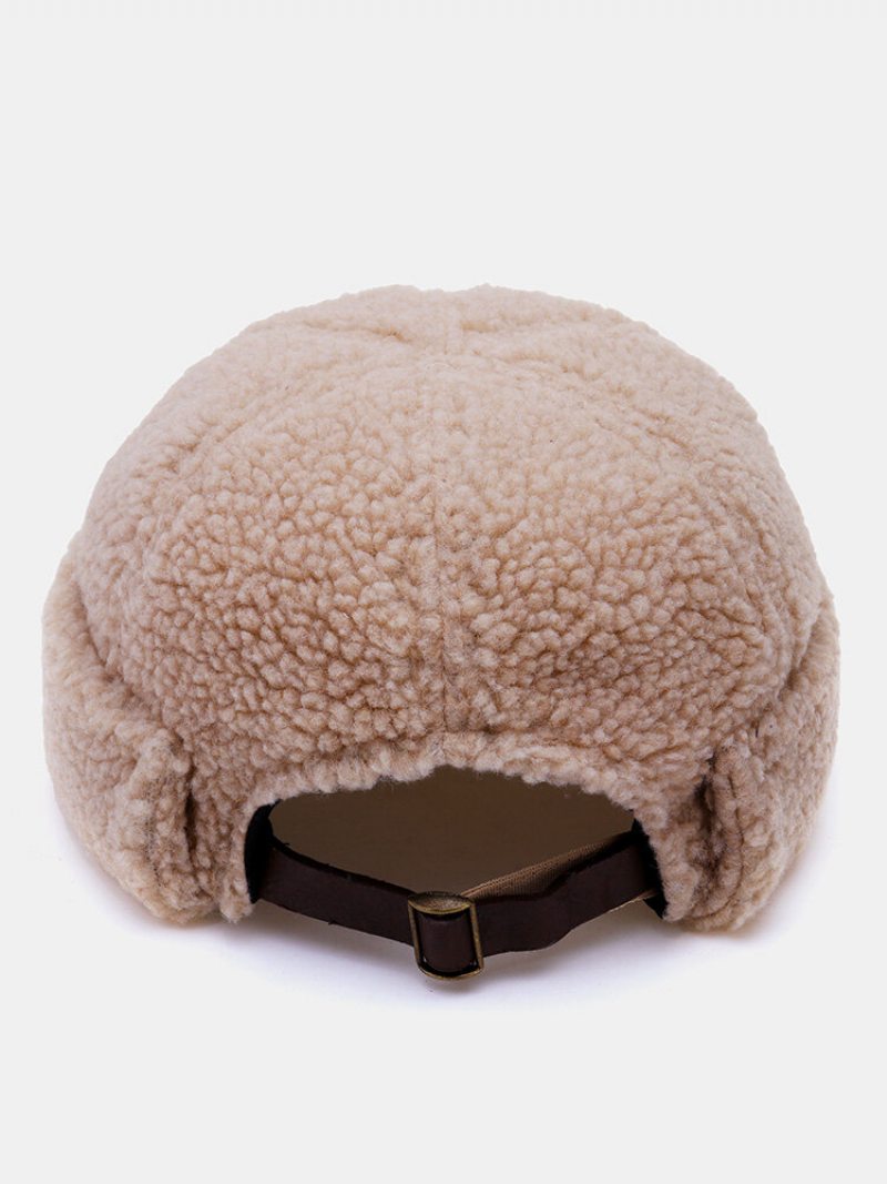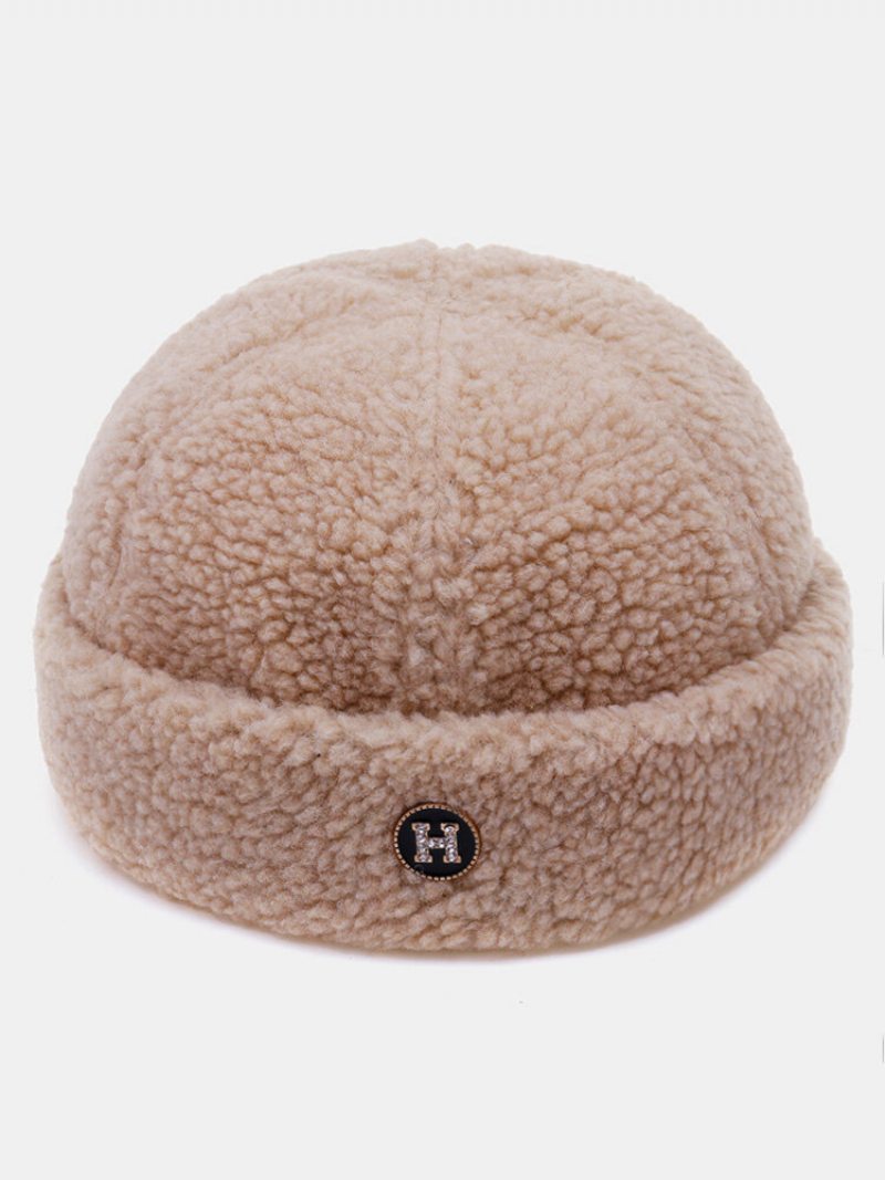 Unisex Jahňacia Vlna Jednofarebné Písmeno Okrúhly Štítok Univerzálne Zateplenie Čiapka Bez Okrajov Landlord Cap Skull Cap