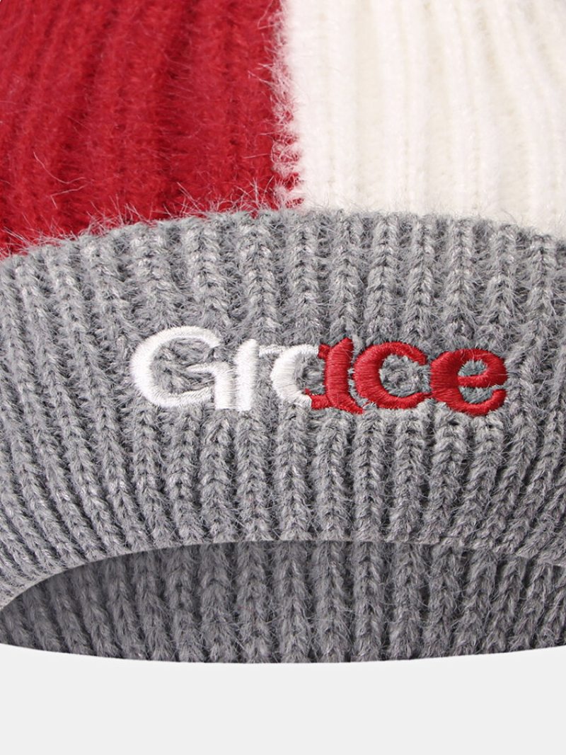 Unisex Pletená Čiapka S Farebným Kontrastným Patchworkovým Písmenom S Vyšívaným Teplom