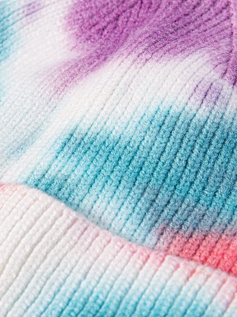 Unisex Pletené Kravatové Zmiešané Farby Jacquard Vonkajšie Teplo Čiapka Bez Okrajov Landlord Cap Skull Cap