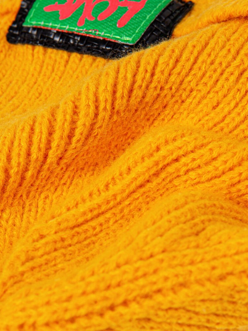 Unisex Pletený Jednofarebný Žakárový Štítok S Písmenami Lemovanie Všestranný Hrejivý Klobúk S Čiapkou Bez Okrajov