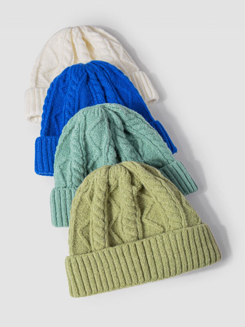 Unisex Pletený Žakárový Jednofarebný Klasický Skrútený Vzor Univerzálny Hrejivý Čiapka Bez Okrajov Landlord Cap Skull Cap
